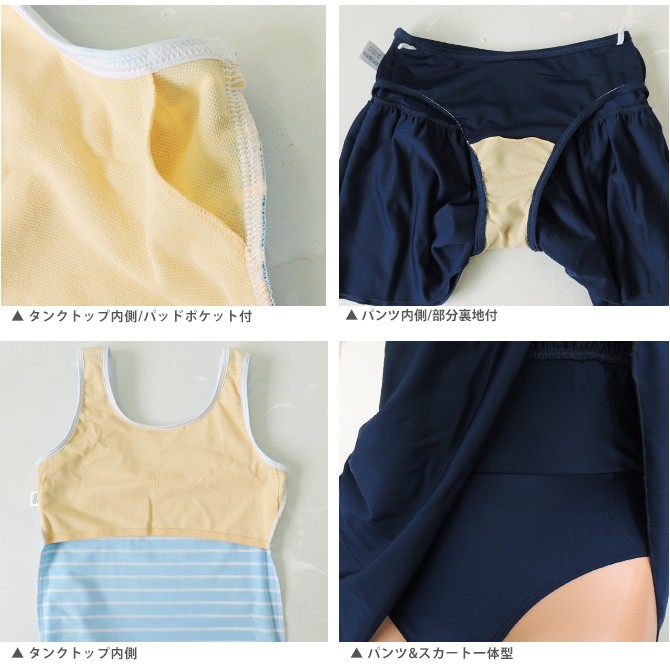 中高生 高校生 体型カバー水着 タンキニ 4点セット ティーン 水着