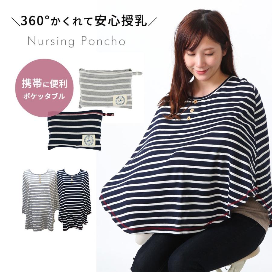 ポンチョ型ボーダー授乳ケープ 巾着袋 ケープ 抱っこ 授乳 授乳用品