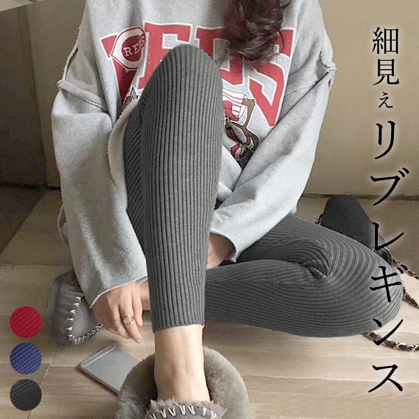 リブストレッチレギンス レディース スパッツ 無地 ボトムス インナー